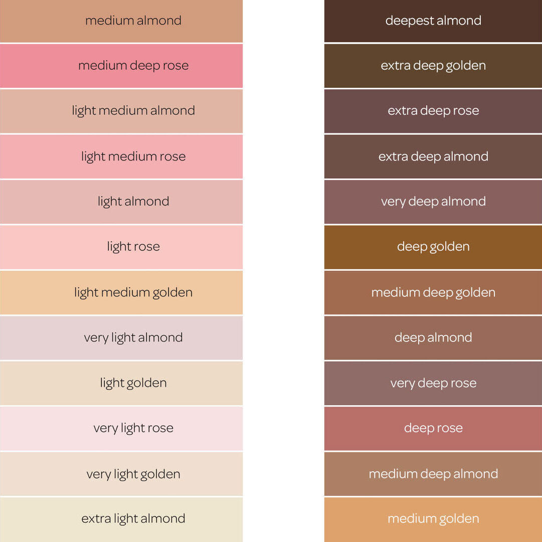 - COLORS OF THE WORLD: Includes colors such as Deepest Almond, Medium Golden, and Light Rose.
