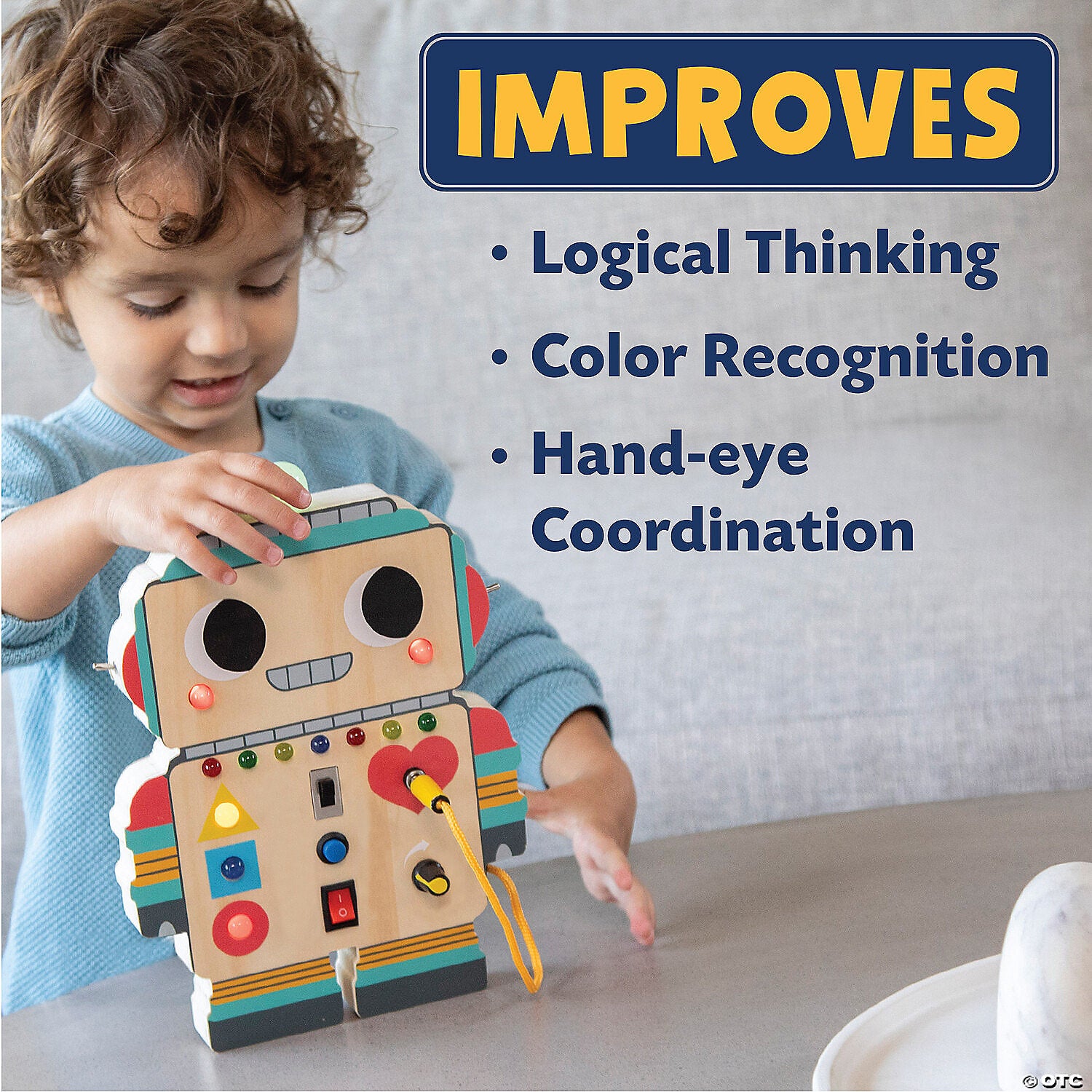• Includes one robot toy with 13 engaging lights and 7 interactive switches and buttons for explorative play