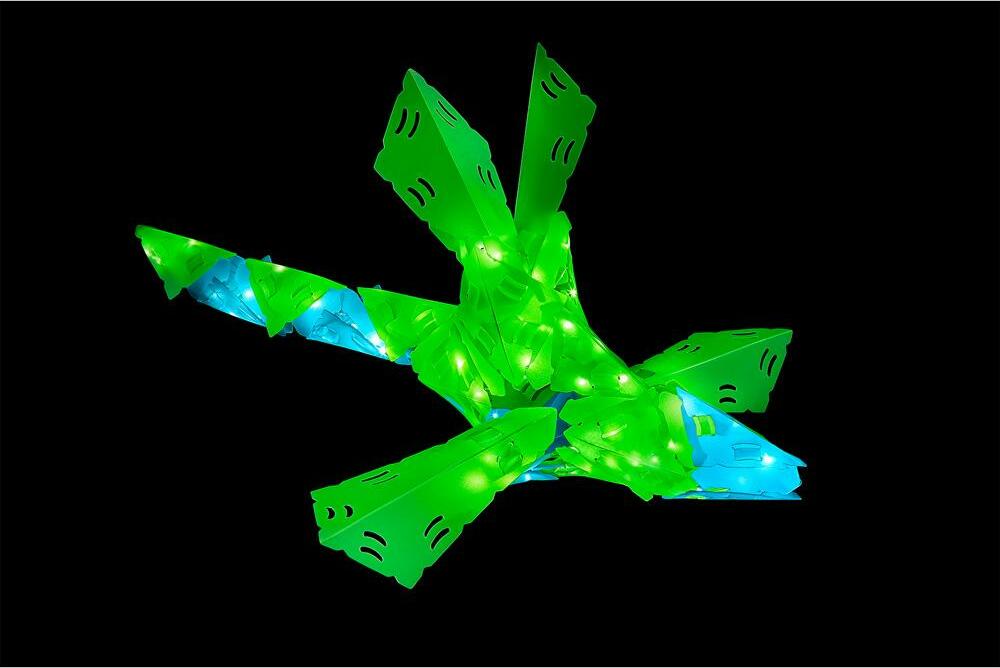 With 138 Creatto pieces and a string of 80 LED lights, you can build a dragon, pterosaur, bird, and dragonfly. Lights powered by USB cable; USB power adapter not included. Suitable for ages 8 and up.