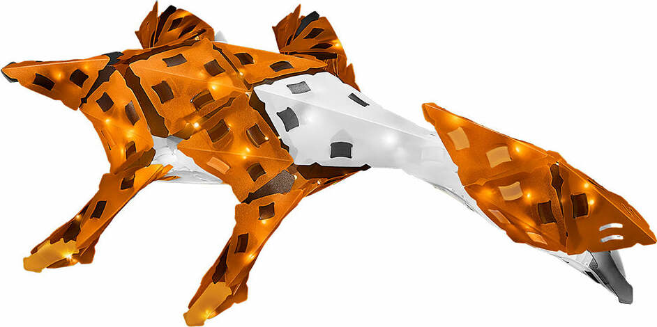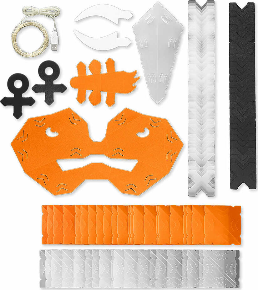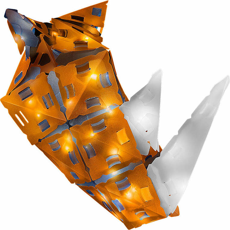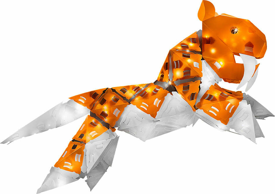 With 154 Creatto pieces and a string of 80 LED lights, you can build a friendly sabertooth tiger, a rhino head, a mammoth, and an elasmosaurus. Lights powered by USB cable; USB power adapter not included. Suitable for ages 8 and up.