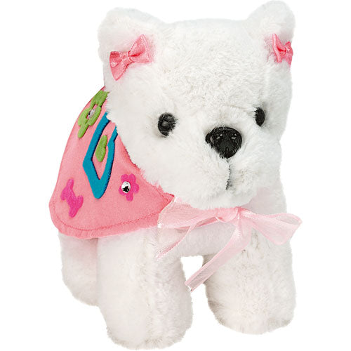 Plush dog with velvety collar and heart charm 6.5 in x 6 in (16.5 cm x 15.2 cm)
