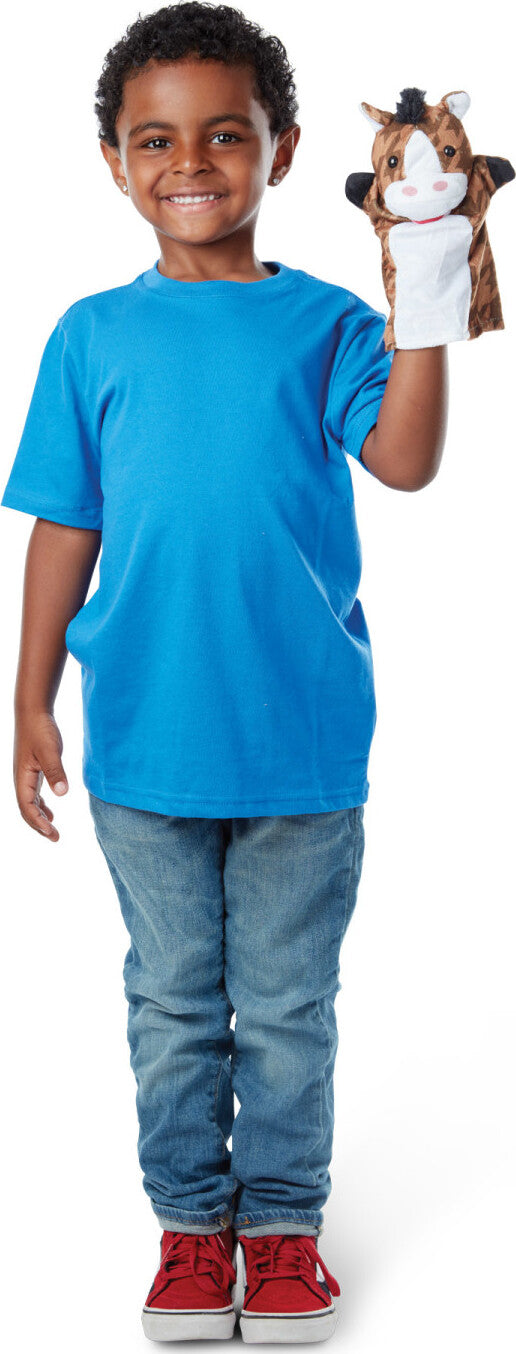 Made with brightly patterned, washable fabrics and built to last, these soft and sweet hand puppets are sure to be go-to toys for years to come. Farm Friends Hand Puppets includes a sheep, cow, pig, and horse.