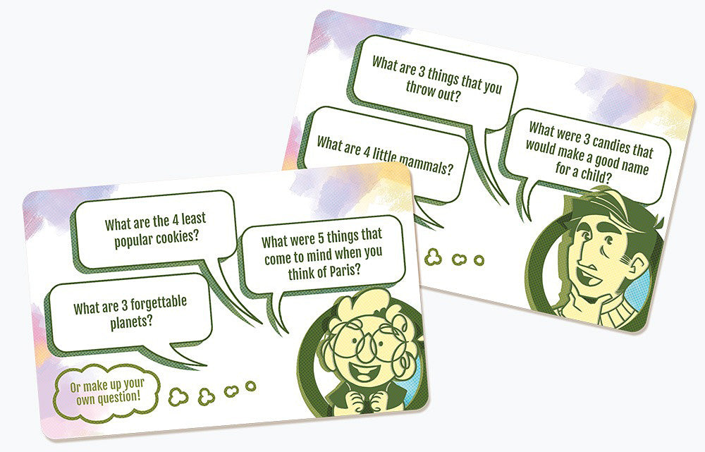 "What are 3 unusual pets?" "Who are the 4 strongest superheroes?" Get to know friends, family, or coworkers in this game of thinking alike! With no wrong answers, this party game asks experience- and opinion-based questions that inspire hilarious and lively conversations. Plays in 30-90 minutes and is easy to learn. Includes 300 cards with 1800 questions, game board, 12 Player pawns, 12 Hive Mind pencils, 1 Hive Mind notepad, 1 custom die, Game rules. For 3-12 players.