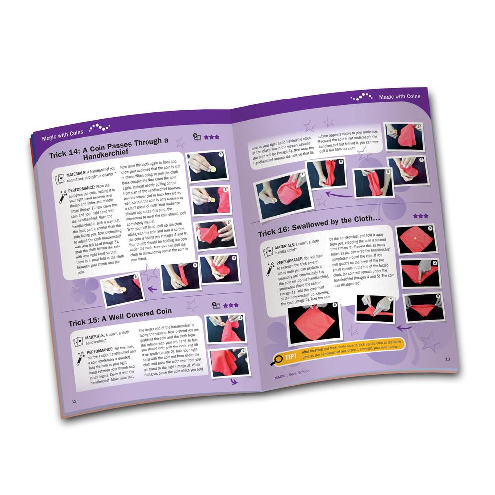 A 72-page instruction manual with color photographs illustrates how the tricks are performed. Video tutorials for the tricks are available online.