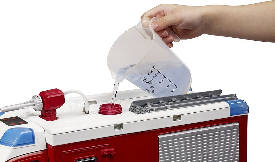 The crew cab can accommodate up to 4 bworld firefighters. The fully functional water cannon with water tank and pump extinguishes any source of fire in no time. There is also a second hose for further extinguishing operations.