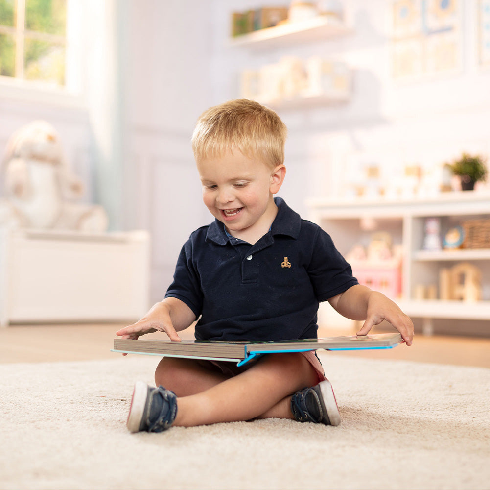 Poke it and pop it to share the joy! This board book has raised areas that "pop" and "click" with the push of a finger as part of the story. Now, let's count all the animals on Old MacDonald's farm!