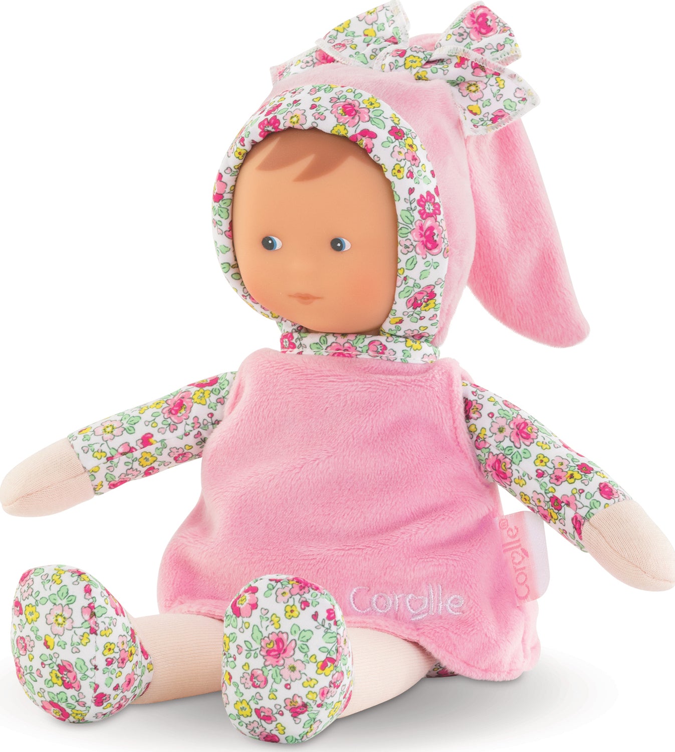 Miss Pink Blossom Garden is the perfect gift for the very young. This delightful 9.5-inch first doll has a soft body that’s ideal for hugging and cuddling! The sweet expression on her smooth vinyl face - delicately scented with vanilla, a Corolle signature - will charm and soothe little ones.