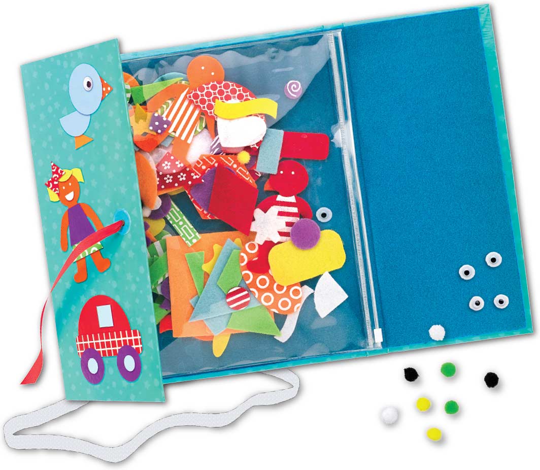 Put your imagination to work as you layer simple felt shapes and wiggly eyes onto a child-sized felt board. Perfect for preschoolers, this open-ended activity will reinforce color and shape recognition, fine motor skills, patterning and creative thinking. No mess and great for travel, this felt board includes a neat and tidy storage bag.
