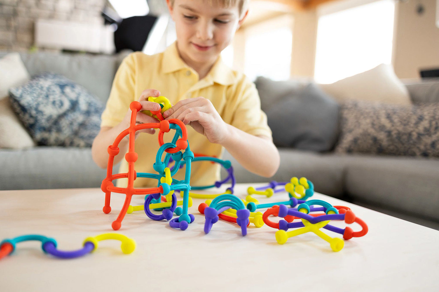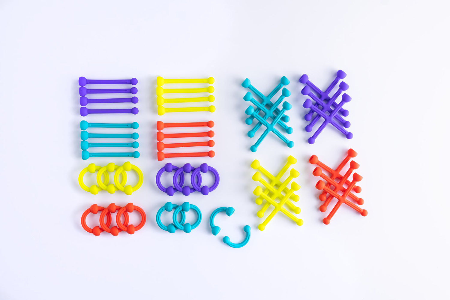 Plip! Plop! Ploop! Sorry, we didn't see you there... we can't stop playing with this new open-ended construction toy! It's a collection of 46 silicone arches, sticks, and Xs that all connect via ball-and-socket ends. When pulled apart, they make a satisfying POP! With the Plip Kit, innovative kids aren't just building, they're exploring as they create swirling patterns, complex prisms, architectural sculptures, and even games! Have dirty Plips? Pop them in the dishwasher! Comes with a drawstring storage bag. Compatible with Plip Links.