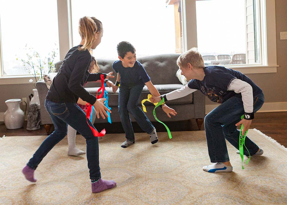 Each player has three colorful ribbons attached to their wristband, two on one hand, one on the other. The rules are simple: snatch your opponents' ribbons before they snatch yours. If all ribbons are taken from one hand, put that hand behind your back. Lunge, grab, and dodge as quickly and cleverly as you can! The last ninja standing with at least one ribbon left wins the game!