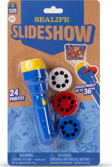 Use this mini projector to view all your favorite wild animals. Comes with 3 discs for a total of 24 images. Or use without the discs as a great little flashlight. Batteries included.