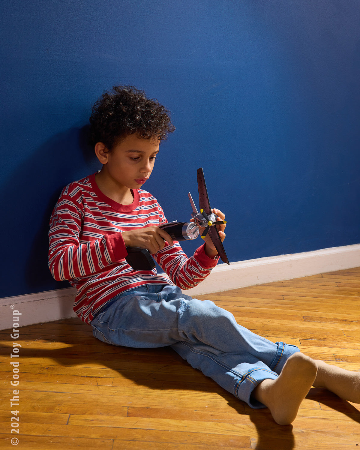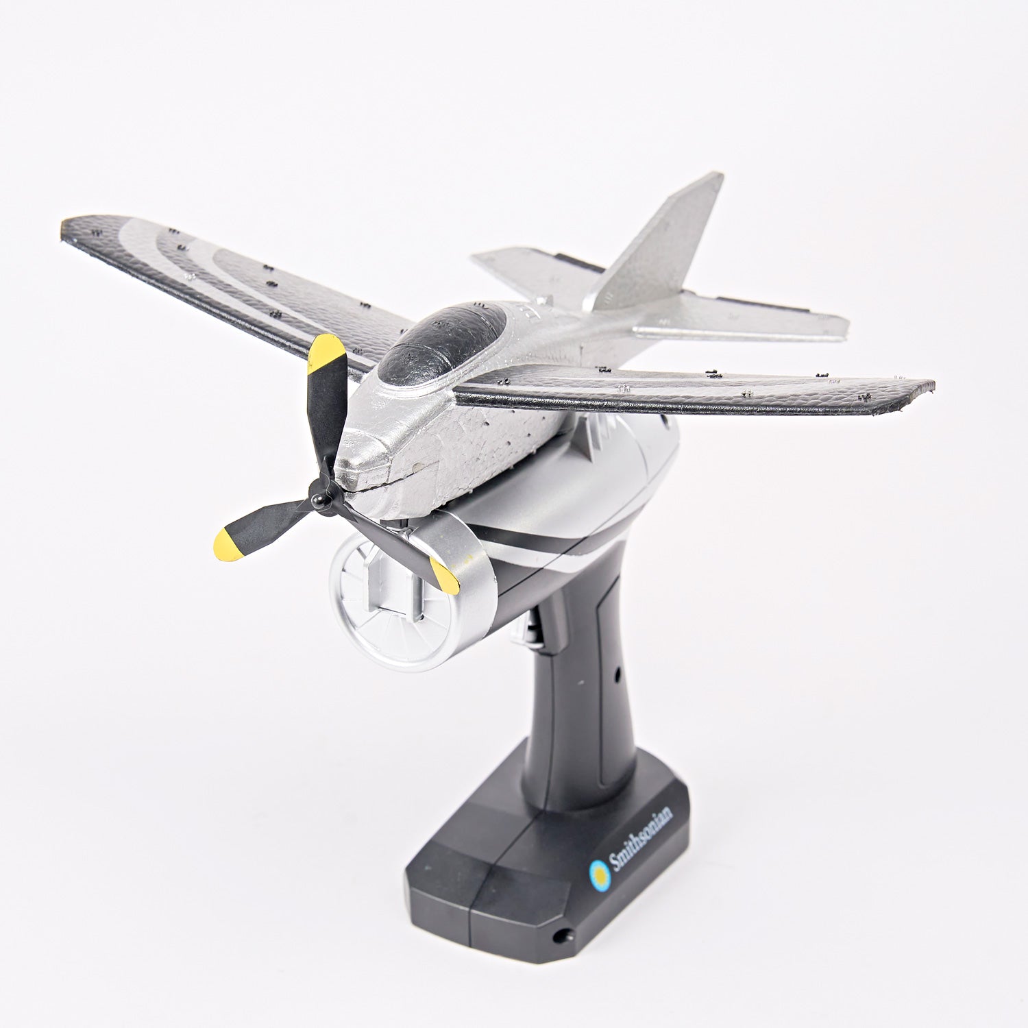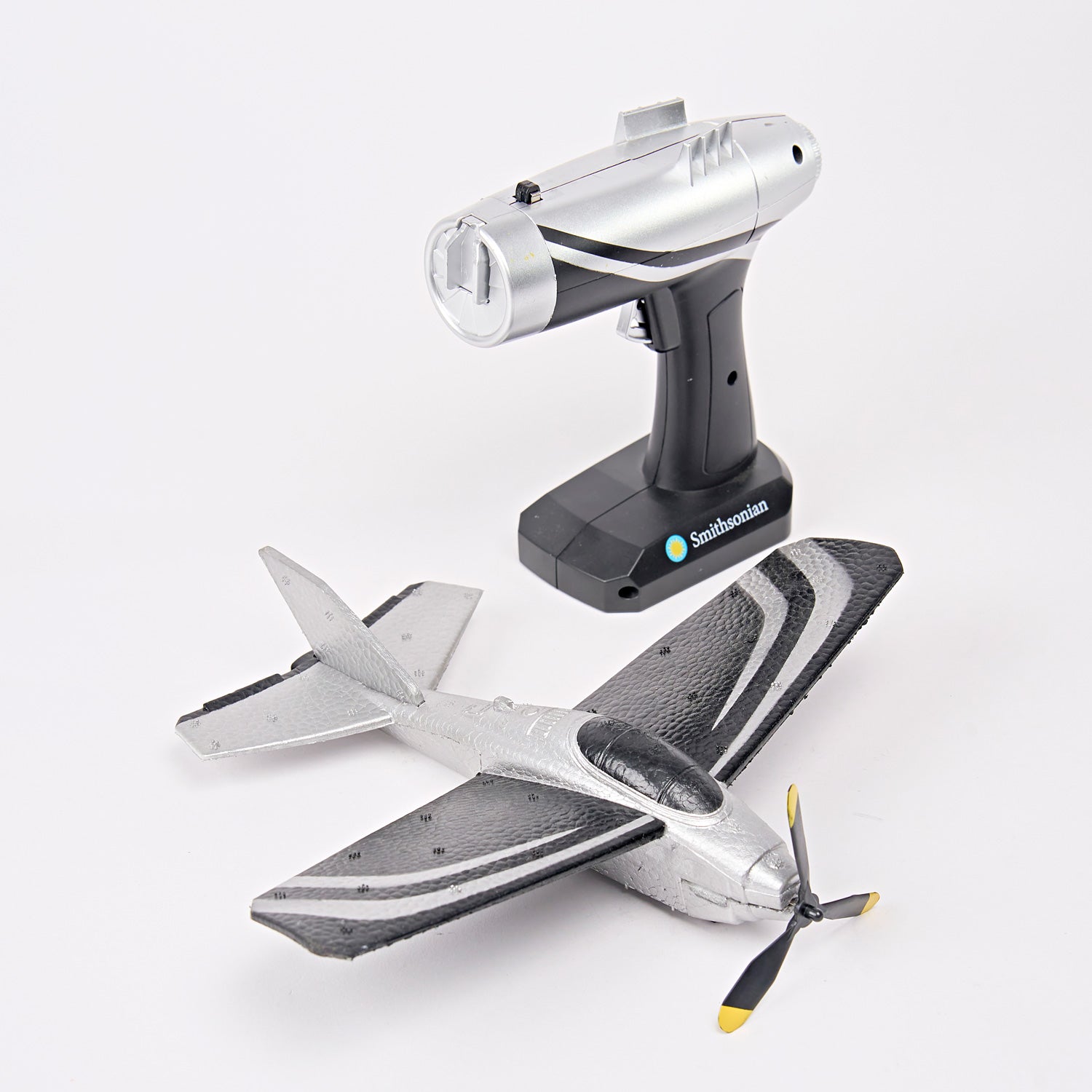 Get ready for high-flying thrills! Head outdoors and explore the wonders of aviation science with this impressive plane. Simply place the plane on the remote control for 8 seconds of rapid charging. Press the LED button to launch it into the air, it will fly in a circle above you for 15-20 seconds! We love that it's aerodynamically built to spiral so you don't have to worry about chasing it after flight or crashing it into anything. Comes with an informational aviation discovery activity booklet and a Smithsonian multi-color pen. Requires 3 AA batteries, not included.