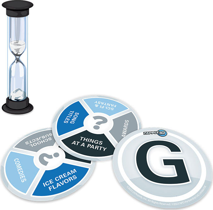 Tapple 10 offers 10 unique games that are challenging and fun for the whole family. The Tapple 10 deck of 80 cards offers 160 different categories that will engage players of all ages, and comes packed in its own travel case with sand timer for fast word fun on-the-go. The included instruction booklet describes how to play each game, and the recommended number of players & difficulty level of each game. 10 Games To Play Include: 1. Tapple 10 Alpha 2. Rake em In 3. Four in a Row 4. Down the Line 5. Head to Head 6. Scramble 7. Alpha Build 8. Countdown 9. Last Man Standing 10. Under Pressure