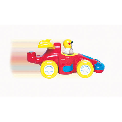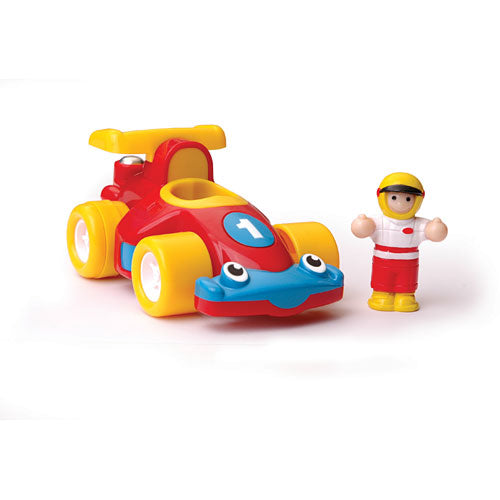And they're off! Here's a marvellous motor racing team featuring two champion driver figures and two friction-powered racing cars with realistic engine sound. Magnetic hooks make them compatible with other products in the WOW World.
