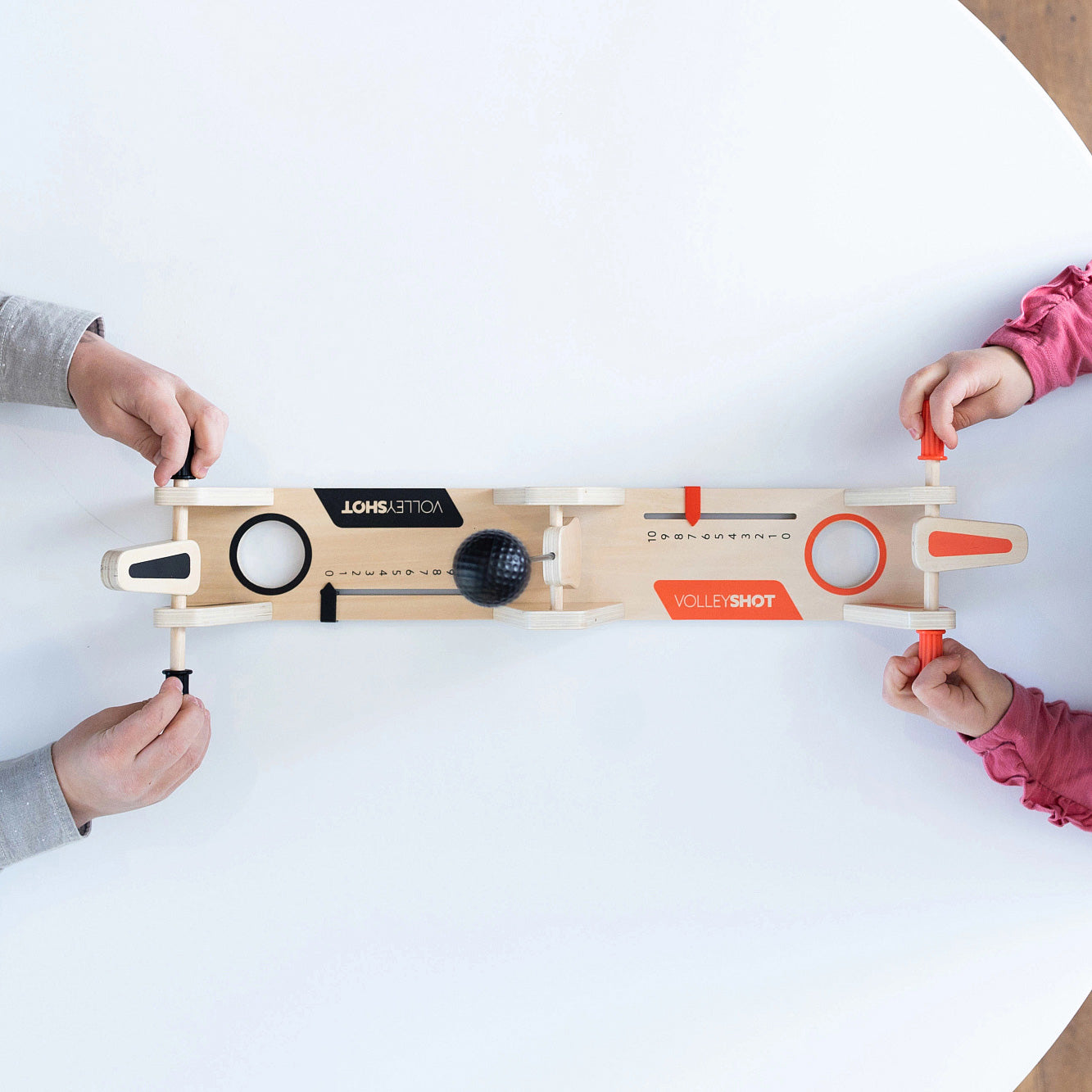 How long can you keep the volley going? In this game of table tennis meets foosball meets pinball, two players face off, each in control of a wooden paddle. Launch into competition, knocking the attached ball back and forth until somebody misses. Stay focused, stay steady... all it takes is a single hiccup to miss, and every miss is a point for your opponent. The first to 10 points wins! It's simple yet addictive, perfect for game nights, parties, or even on the go. For 2 players.