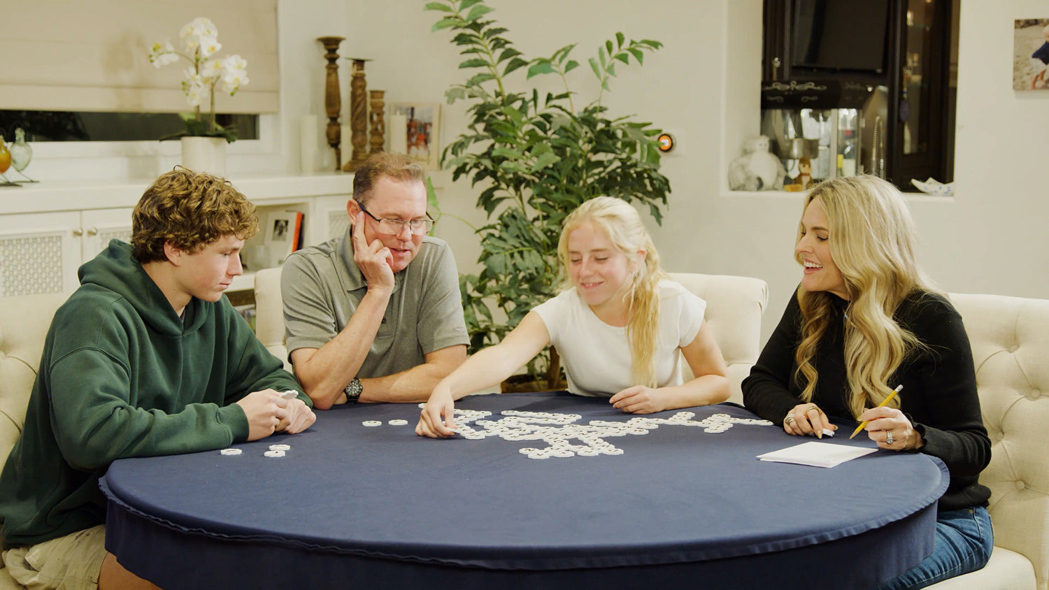 Introducing a puzzling new word-building game that doesn't restrict play with the confines of a gameboard! Craft words vertically, horizontally, and diagonally with octogonal soft-snap pieces, creating a crossword puzzle-like grid and scoring opportunities. Large tiles with big bold letters make gameplay easier for grandparents! Seasoned wordsmiths and word game newcomers enjoy building word grids and flexing their vocabulary from multiple angles. For 1-4 players.
