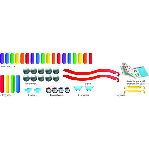 Have fun building incredible structures and vehicles with SmartMax! SmartMax allows children to explore magnetism safely. The oversized pieces are specifically designed for handling by young kids as they learn about the effects of magnetic attraction and repulsion, while older children will have fun using the pieces to construct towers, bridges and other creations. They magnets are strong enough to carry up to 60 times their weight! The Basic Stunt set is a great combination of SmartMax fun: building both structures and vehicles! Includes 46 pieces and a guide to build models!